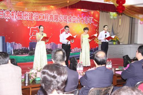 2013年3月22日下午兩點(diǎn)十分,甘肅機(jī)械化建設(shè)工程有限公司成立六十周年慶典大會(huì)在公司二樓大會(huì)議室舉行。公司領(lǐng)導(dǎo)、部分退休老領(lǐng)導(dǎo)、機(jī)關(guān)全體員工、各基層單位先進(jìn)個(gè)人及代表出席大會(huì)。大會(huì)分兩個(gè)階段進(jìn)行,公司黨委書記胡德生同志主持大會(huì)。大會(huì)第一階段,公司董事長(zhǎng)陳想蕃先生向大會(huì)作慶典致辭,黨委書記胡德生同志作了重要講話。大會(huì)第二階段為公司文藝匯演,匯演共十二個(gè)節(jié)目,公司領(lǐng)導(dǎo)及員工歡聚一堂,表演精彩紛呈,現(xiàn)場(chǎng)氣氛非常熱烈,大會(huì)持續(xù)了近兩個(gè)小時(shí)。