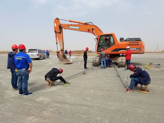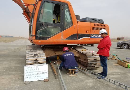 驗(yàn)收小組進(jìn)行高程檢測(cè)