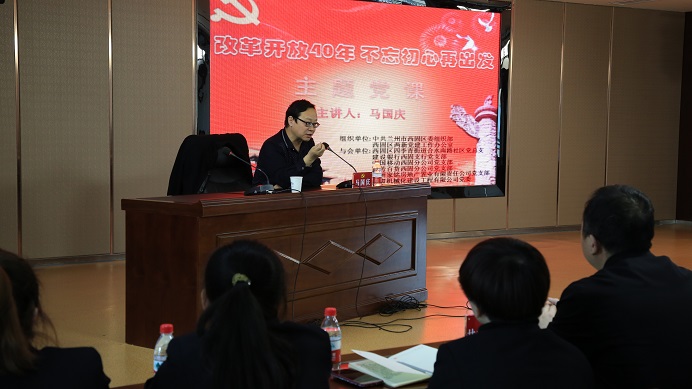 為紀(jì)念改革開(kāi)放40周年,進(jìn)一步激勵(lì)黨員不忘初心、牢記使命。 11月28日,公司黨委牽頭舉辦了 “改革開(kāi)放四十年 不忘初心再出發(fā)”的主題黨課。120余名黨員在我司大會(huì)議室聆聽(tīng)了講座。本次主題黨課在蘭州市西固區(qū)委組織部和西固區(qū)兩新黨建辦公室指導(dǎo)下開(kāi)展,本樓宇內(nèi)5家單位以及兩新辦和社區(qū)共同參與。組織這種形式的大黨課,就是貫徹落實(shí)全區(qū)組織工作會(huì)議精神,加強(qiáng)“五化五強(qiáng)”黨支部建設(shè),推進(jìn)街道社區(qū)黨建、單位黨建、樓宇黨建互聯(lián)互動(dòng),努力提升城市基層黨建工作水平。