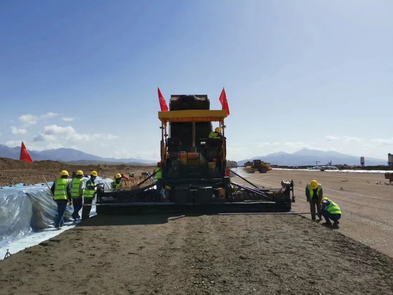 5月28日,伴隨著第一車水泥穩(wěn)定砂礫混合料緩緩倒入攤鋪機(jī)料斗,標(biāo)志著由我司承建的新疆和靜(巴音布魯克)機(jī)場(chǎng)飛行區(qū)跑道水穩(wěn)基層試驗(yàn)段施工正式拉開(kāi)序幕。